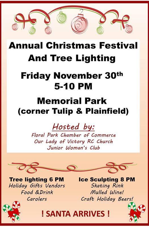 Friday, November 30 from 5 to 10pm at Memorial Park, corner of Tulip and Plainfield Avenue.