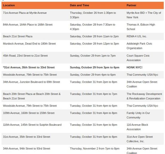 15 car free streets announced in Queens for Trick-or-Streets for all kids to have a Halloween and Día De Los Muertos. This is the second year for the event.
