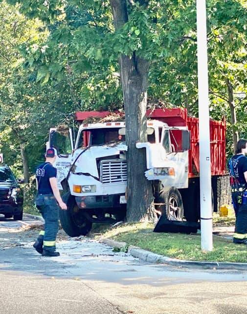 The NCPD reported a truck hit a tree in Garden City. It happened around 12pm today. 7th Street by Hilton Avenue near Stewart Avenue was closed. EMS reported no injuries.
