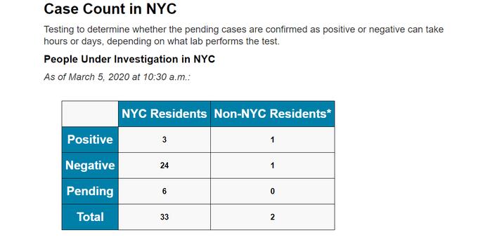 The NYC Dept of Health updated with two more patients tested positive for coronavirus in NYC. One is a man in his 40's and the other is a woman in her 80s. Both has not traveled outside USA or connected to the existing people tested for positive. There are now 13 confirmed cases in NY.