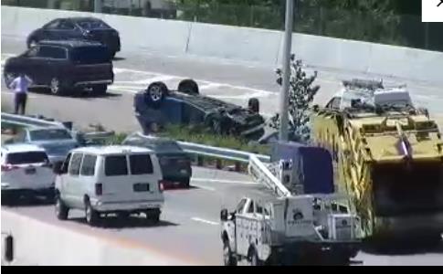 Long Island Expressway westbound by the BQE, heavy delays due to a vehicle flipped upside down. ESU, FDNY, EMS and NYPD are on the scene