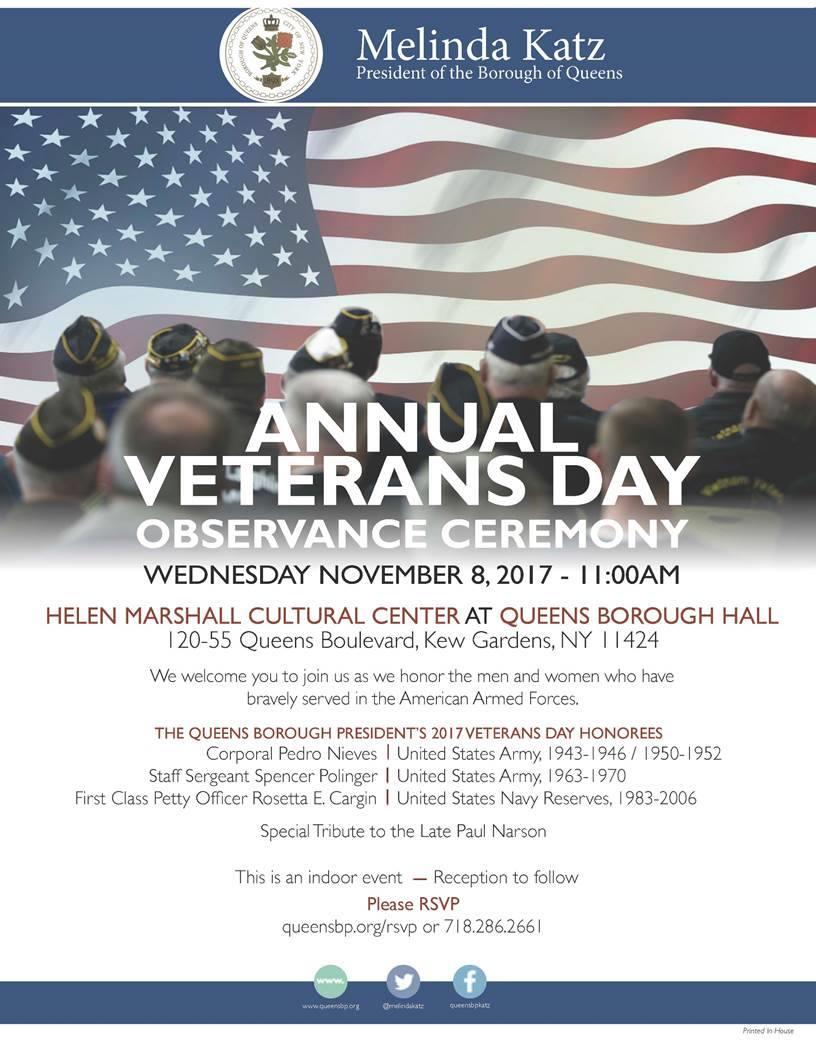 Veterans Day Memorial at Queens Borough Hall