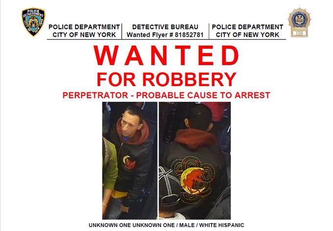 Police also released surveillance pictures of a perp wanted for robbery on the corner of Roosevelt Avenue and 82nd Street. The victim was stabbed with a glass bottle to his left shoulder causing a laceration.