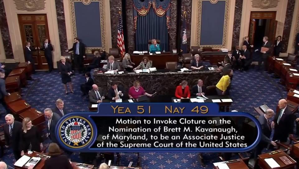 "The motion is agreed to.". That's the final decision sending key procedural vote on Brett Kavanaugh's nomination to the Supreme Court passes 51-49. The results will be counted by early as Saturday. Despite being held back in the elevator by two Queens woman, Sen. Flake voted yes. The biggest surprise was Sen. Manchin, a Democrat voted yes.