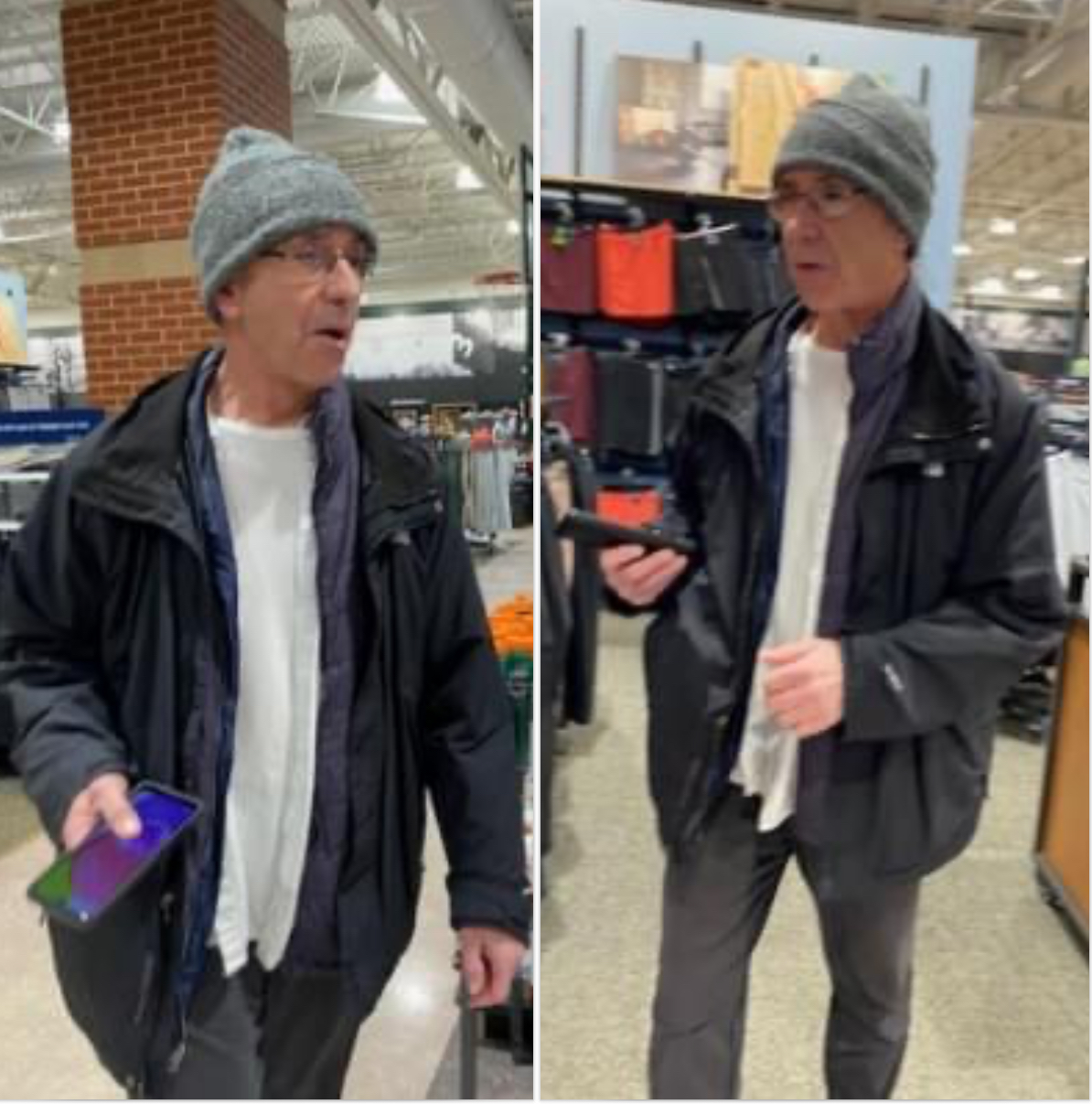 A man stole Yeti mugs valued at $280 from Dicks Sporting Goods, located at the Smith Haven Mall, on March 10 at approximately 3:30 p.m.