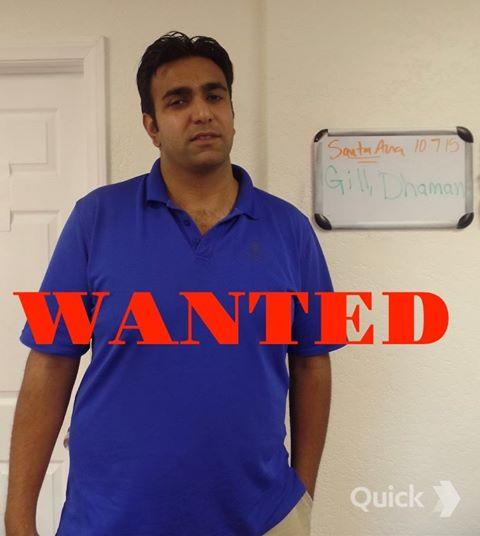 Dhaman Donald Singh Gill was arrested in September 2, 2015 in Orange County, California and charged with domestic violence attacking his own family and vandalized home. His wife, Ana Marie Singh Gill, 31 was also wanted until she her arrest on August 18 at 12pm in Texas. After Donald's arrest and posting bail, he did not appear in court and on the run. Now he is a fugitive wanted by bounty hunters matching the bail money. His last location was Queens presumed to be in the northeast area living with relatives. Bounty hunters are in Queens looking for him.