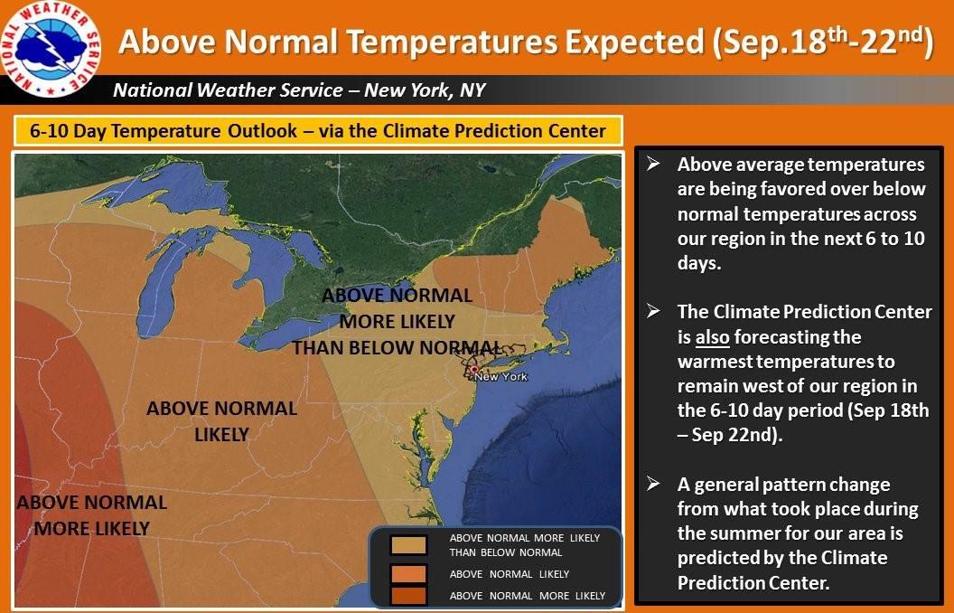 A long warmer weather is coming and will stay longer for September in NY. Enjoy!