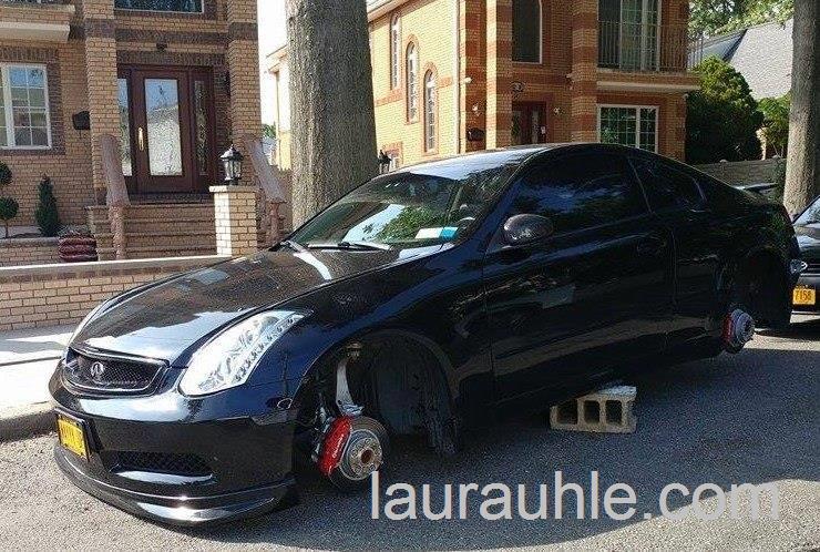 An owner of Infiniti woke to Sunday, August 27 morning to see all four wheels stolen and placed on concretes. This is on East Williston Avenue and 263rd Street. The owner called police and as usual took the report for investigation.