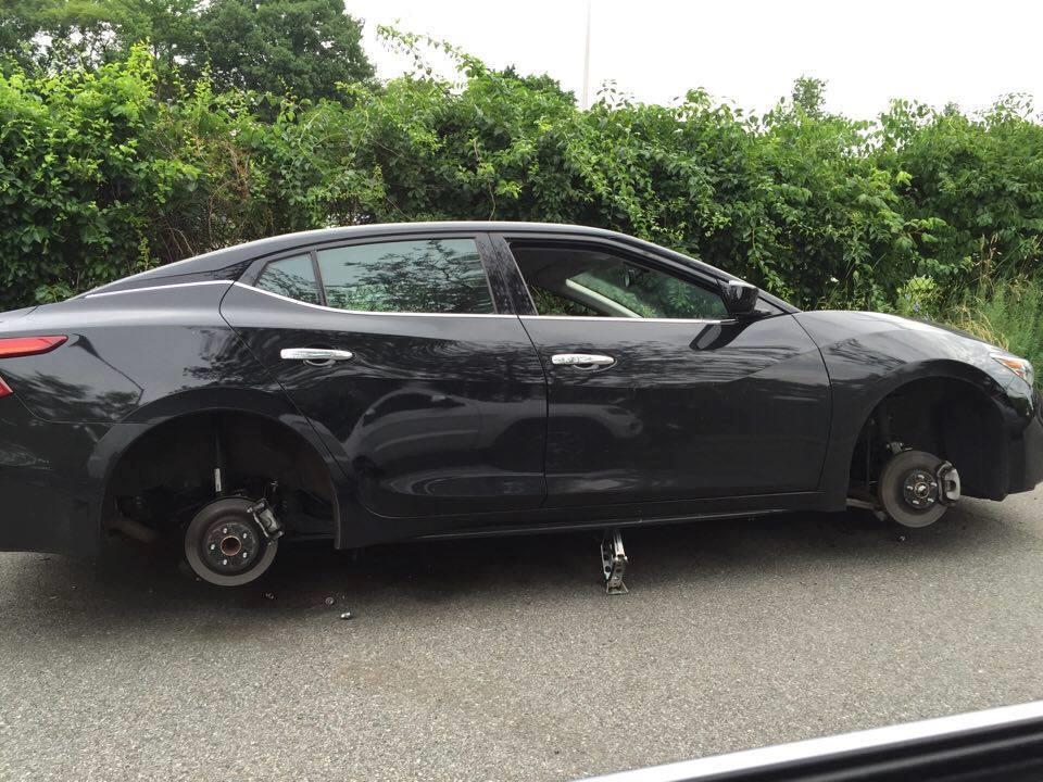 Grand Central Parkway service road between Commonwealth Blvd and Little Neck Parkway, an owner of Nissan Maxima reported to police of wheel theft earlier this morning. This is the second incident of the morning.