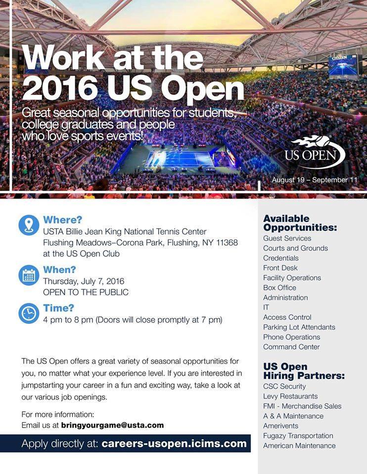 Work at the US Open - July 7 from 4pm to 8pm, free to the public.