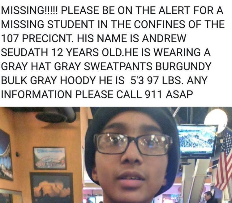 12 year old child missing in Fresh Meadows