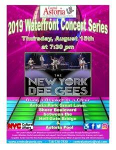 Thursday, August 15 at 730pm in Astoria Park Great Lawn. Shore Blvd (Between the Hell Gate Bridge & the Pool) featuring The New York Bee Gees. Bring a blanket and chair. Open to the public.