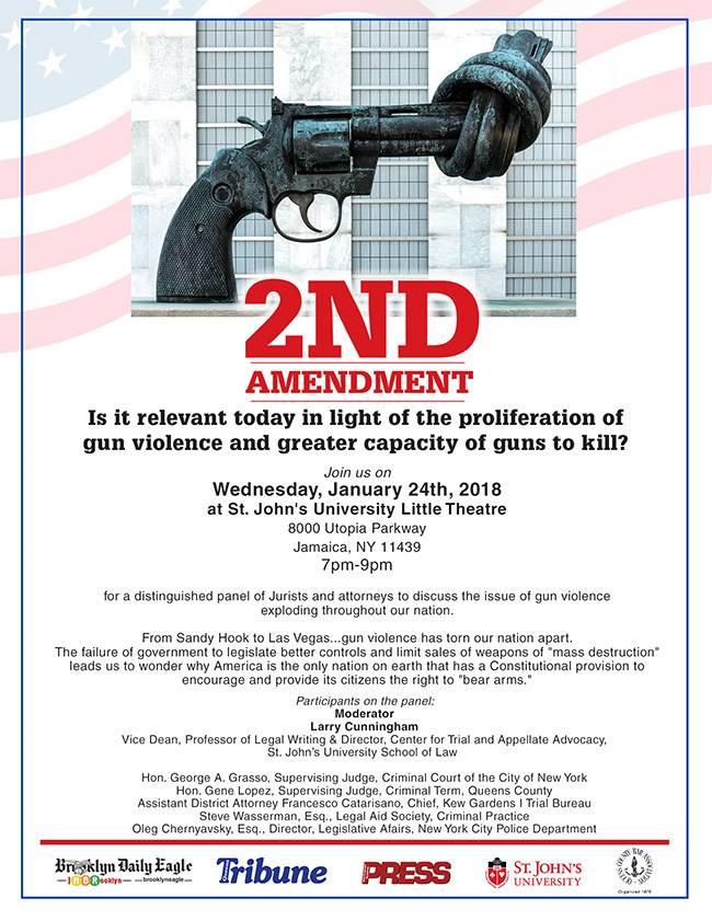 Despite NY has the third lowest rate of gun deaths in the nation, gun violence is still a higher crime. Wednesday, January 24 at 7pm in St John's University. Open to the public.