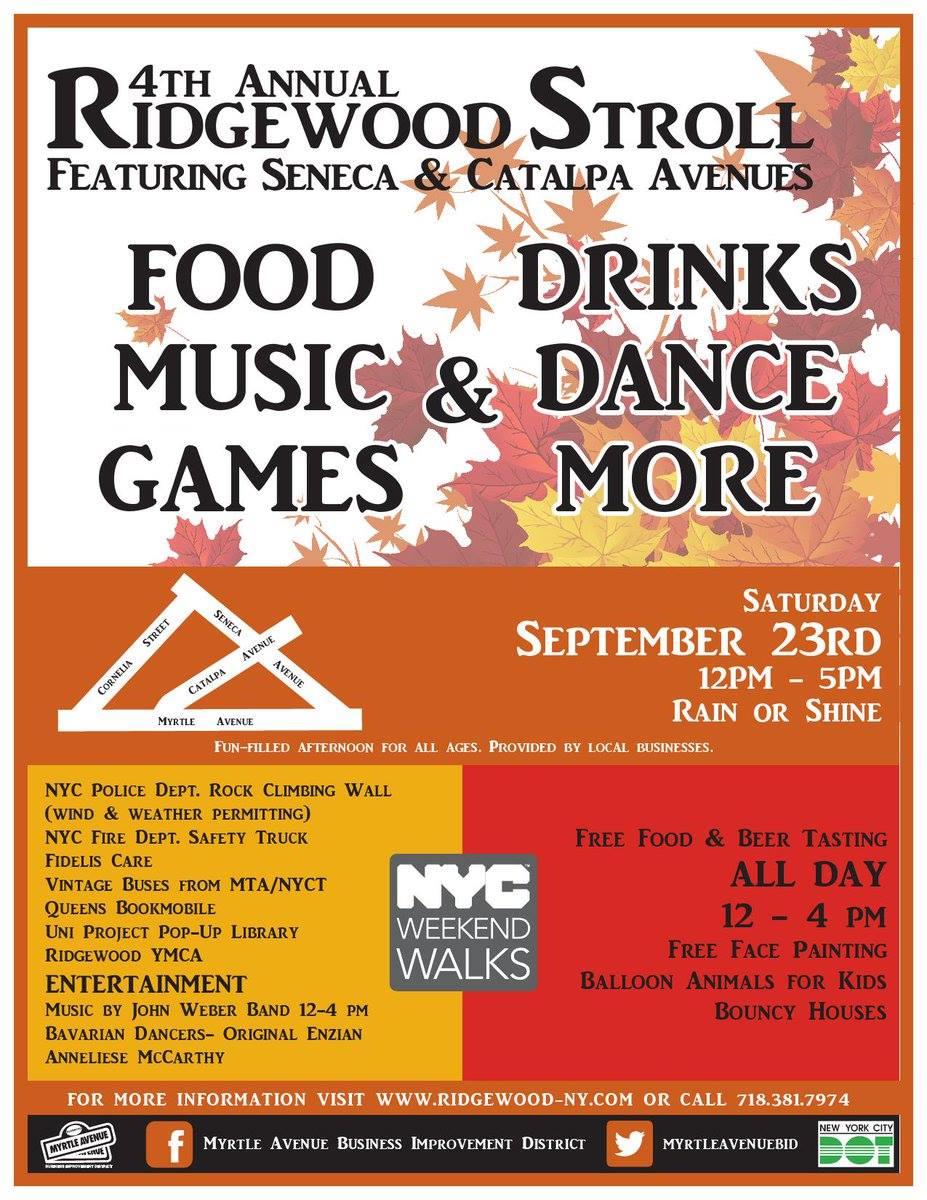 Saturday, September 23 from 12pm to 5pm. Open to the public. Free food, beer tasting and more. The event is at Seneca Ave between Myrtle & Cornelia Street and Catalpa Ave between Seneca & Myrtle Ave.