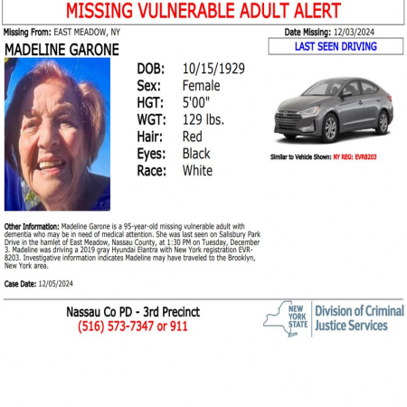 Last seen driving a gray 2019 Hyundai Elantra with license plate number EVR8203.