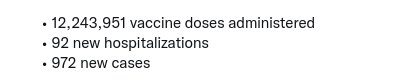 The NYC Mayor's data shows 972 positive vaxx cases for this week. That's a bigger picture than crime or anything else in NYC.