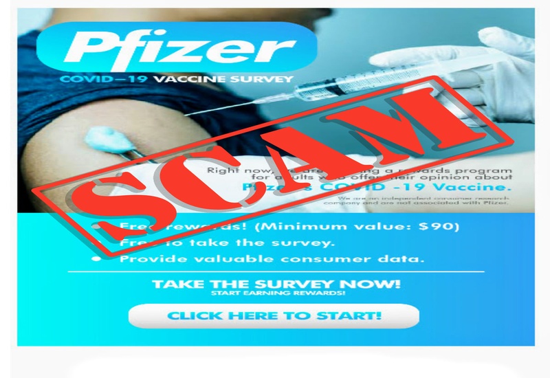 Police reported of a new scam using a bogus vax survey for all to fill out to steal personal information and money. This is sent by emails and texts with free reward but asked to pay for shipping fees. This is a fraud activity going online. No legitimate surveys ask for your credit card or bank account number to pay for a "free" reward. Details of how to prevent scams is at the FTC link, https://www.ftc.gov/coronavirus/scams-consumer-advice