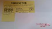 Its a post card with first, second, third, fourth and so on notices to selected senior citizens in the area by bulk mail and sometimes an envelope with confidential for owner with no name and address.