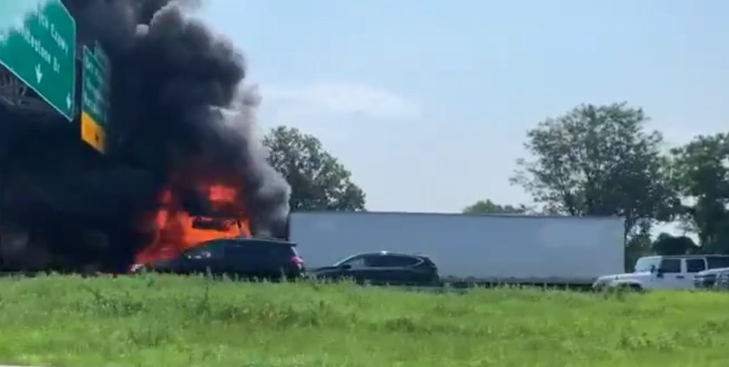 Brooklyn Queens Expressway northbound by Belt Parkway, all lanes closed due to a fuel spill from tractor trailer. Hazmat crew is working on the scene. There is fire on the truck. FDNY is also on the scene working. Heavy delays all around.