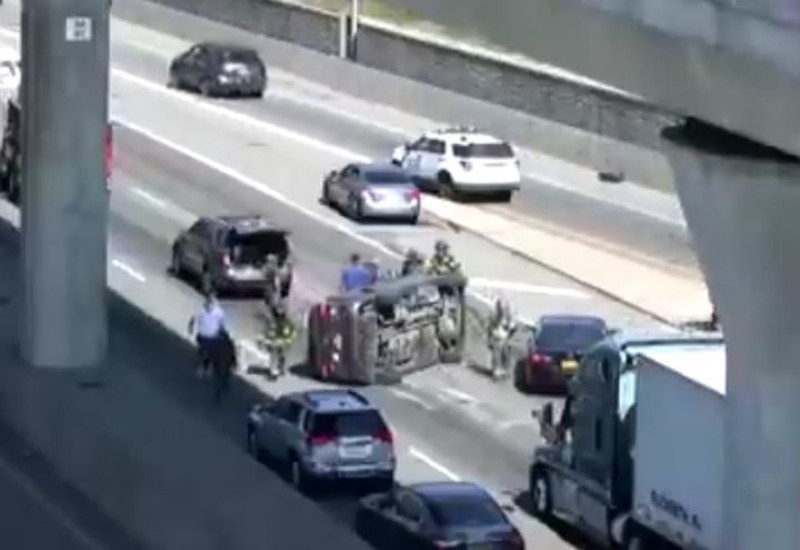 Van Wyck Expressway northbound at the Linden Blvd Exit, all lanes closed due to a vehicle flipped. EMS is checking on the people from the vehicle. ESU is working to upright the vehicle. Heavy delays all around.