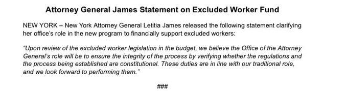 After the Excluded Worker Fund is approved for $2.1 billion from the taxpayer's budget, illegal immigrants are lining up at the local politicians office for paper works. This is one time payment for those who didn't get a stimulus from the federal approved by the governor. Each individual in a household will receive $15,600 or a couple at $31,200 instead of $21K after eliminating criminals off the budget list. The governor reported the attorney general will oversee the legal grounds to avoid fraudulent activities. At the same time, 50% of the funds will be targeted mainly to Jackson Heights, Corona, Elmhurst and its vicinity.