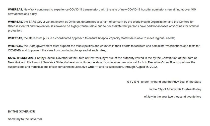 The NY Governor extended the RONA mandate from July 14 to August 13 with love and care.