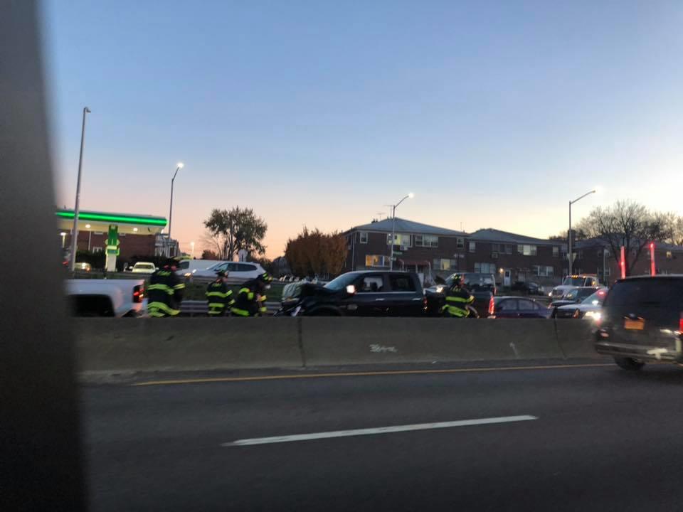 Long Island Expressway eastbound at Oceana Street Exit, multiple vehicle accident with injuries.