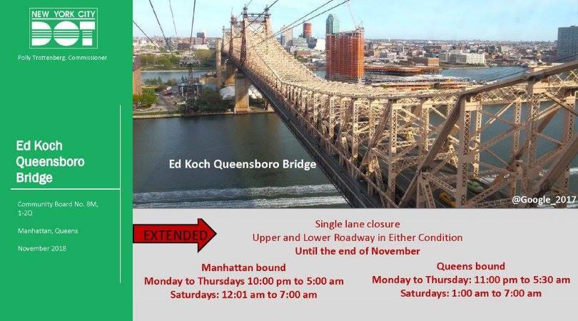 For Manhattan bound, Monday to Thursday, 10pm to 5am and Saturday from 12am to 7am. For Queens bound, Monday to Thursday, 11pm to 5:30am and Saturday from 1am to 7am.