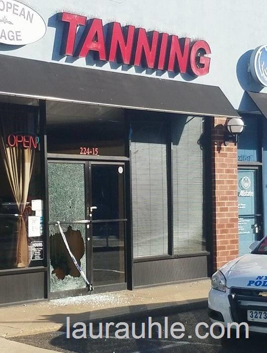 Police were called to European Image Tanning Center on Union Turnpike and Springfield Blvd in Bayside reporting intruder alert. Front door glass was broken. When police arrived in the morning, the parking lot has been closed for investigation. Nearby residents stated they heard loud noise before 5am in the morning on Wednesday, October 4. Ongoing investigation.