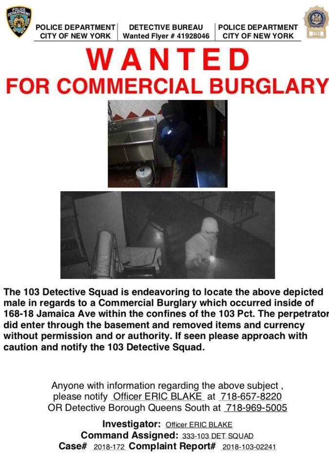 Burglary suspect wanted on Jamaica Avenue