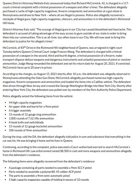 NYPD conducted a raid in Richmond Hill after a Queens resident had over 10,000 bullets inside the home. The whole scenario started with a large purchase in a Pennsylvania gun show last Sunday and stocked inside the vehicle. Then the Port Authority was waiting to pull over the vehicle. Investigation went ka-pow and the rest is all open.