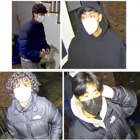On January 1, 2024, at approx 3AM, the pictured male subjects unlawfully entered & removed cash/jewelry from inside a residence on 147th Place. The subjects then fled the location in a white sedan.