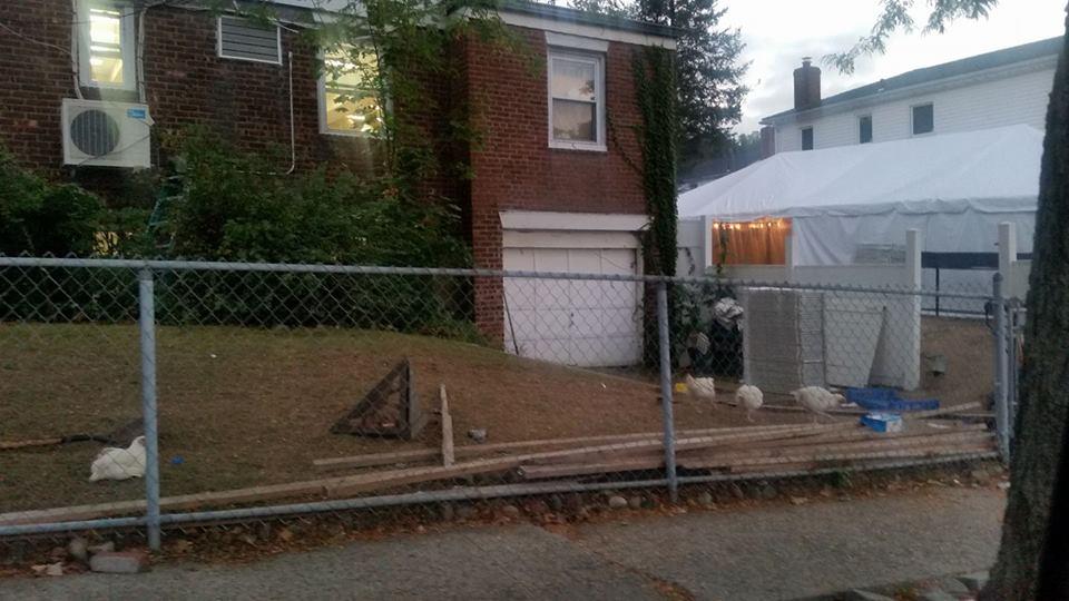 Chicken slaughter conducted inside white tent on Union Turnpike