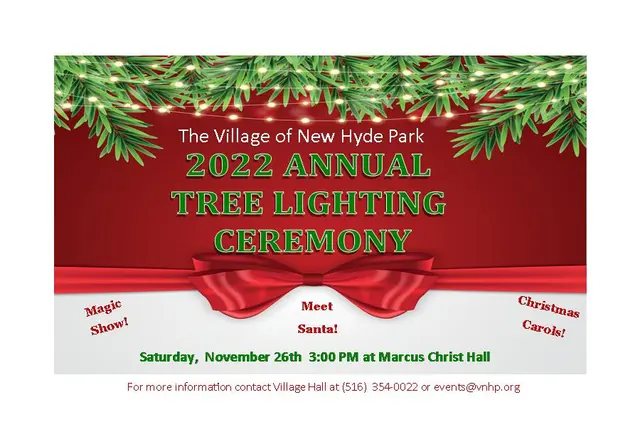 Saturday, November 26 at 1420 Jericho Turnpike in New Hyde Park will have the village tree lighting. This is at the Marcus Christ Hall. Come meet Santa, carols and more.