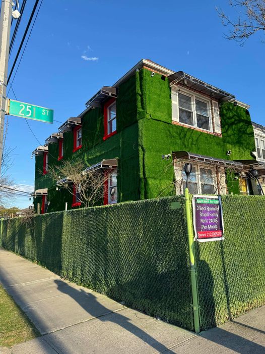 One example is a home in Bellerose. This is on 252nd Street where green turf is added all around the home selling them as a promotion with signs outside.