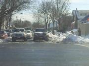 This is 259th Street which is a two way street but there is a sign of do not enter for Burger King parking lot exit. This driver after coming out of the parking lot think 259th Street is one way so made a left turn to the opposite lane to wait for the light before making a left on Hillside Avenue. \