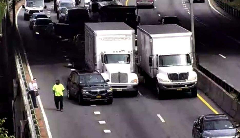 BQE westbound before the Brooklyn Bridge, a car sideswiped a commercial truck and all came to halt.