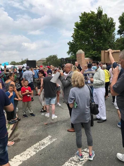 Around 12:30pm, people started coming to Hillside Avenue at the gate of SNAP Senior Center entrance. By 1pm, the crowd grew larger.