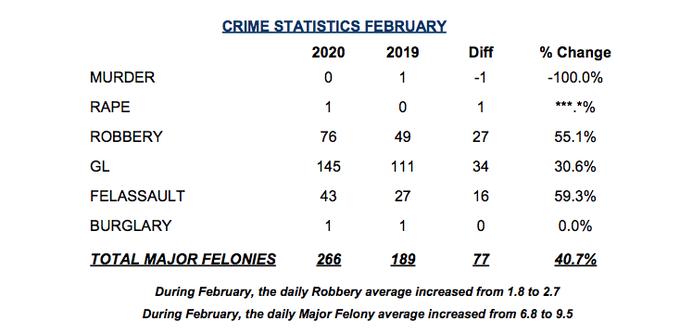 Robbery, grand larceny and felony assault continue to rise in February 2020 in NYC. Subway crime is at all time high where essential people are being assaulted and robbed. This is the report for February 2020.