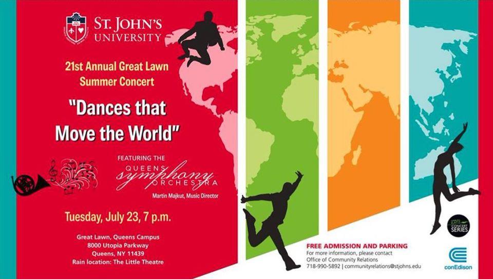 Tuesday, July 23 at 7pm at the Great Lawn in St John's University. This is part of The Queens Symphony Orchestra. Open to the public.