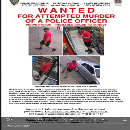 Dangerous suspect wanted for attempted murder of an NYPD officer