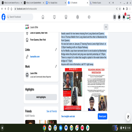 As for Medlin, cops have narrowed down to one location by Manhattan Bridge where the phone's last ping was reported yesterday at 7:09pm. There is a report of a video that caught a splash in the water below the bridge at 7:10pm.