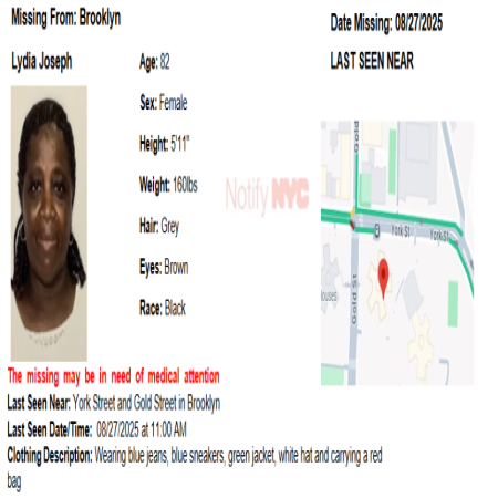 Lydia Joseph, F/B/82 from the area of York Street and Gold Street in Brooklyn.