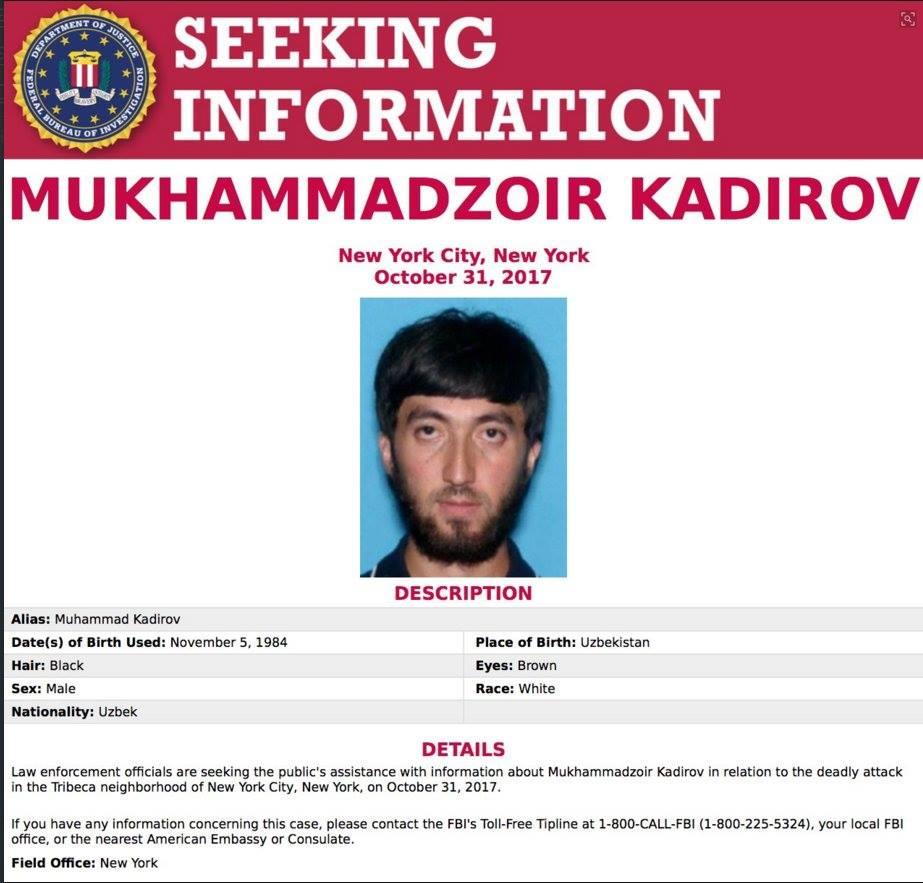 On Wednesday, November 1st, Dept of Homeland Security and FBI reported the terror attack in NYC on October 31st is part of a large network. Now FBI says another person is wanted for questioning in the New York City bike lane truck attack. Also, earlier today, police arrested Matthew Passaro, 46 at the Port Authority around 11:30am and reported he has ties to ISIS. Passaro is also a suspect wanted for a homicide in Brooklyn Heights on September 20. Passaro goes by the name Abu Bhakar. Update - Kadirov has been arrested.