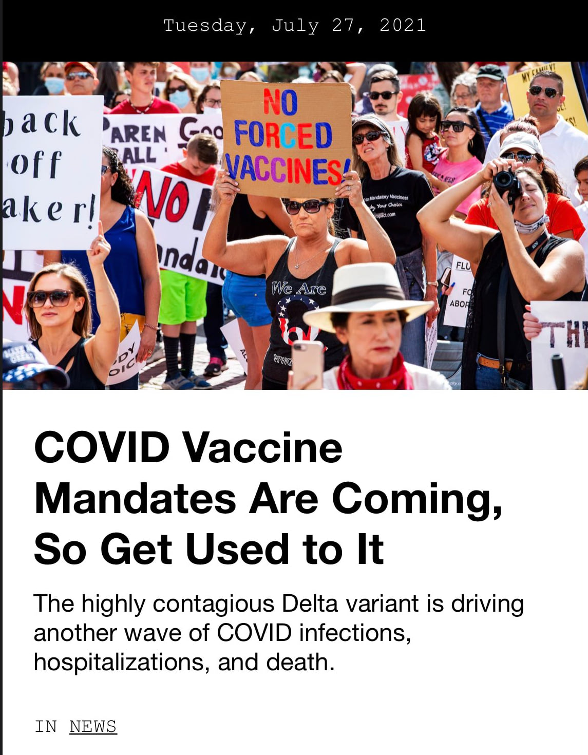 This was the NY governor's quote from yesterday's press brief, “We have to knock on those doors, and we have to convince people, put them in cars and drive them and get that vaxx in their arm. That is the mission.”
