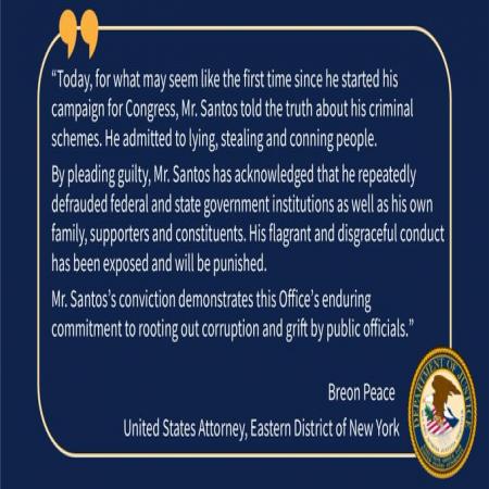 “Today, for what may seem like the first time since he started his campaign for Congress, Mr. Santos told the truth about his criminal schemes. He admitted to lying, stealing and conning people,” stated U.S. Attorney Breon Peace for the Eastern District of New York. “By pleading guilty, Mr. Santos has acknowledged that he repeatedly defrauded federal and state government institutions as well as his own family, supporters and constituents. His flagrant and disgraceful conduct has been exposed and will be punished. Mr. Santos’s conviction demonstrates this Office’s enduring commitment to rooting out corruption and grift by public officials.”