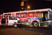 It happened on Friday night at 10pm on the corner of Northern Blvd and Prince St in Flushing when a van slammed to a city bus causing fire. \