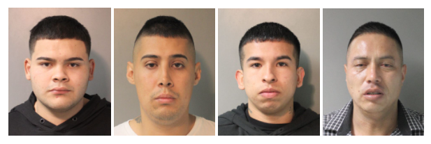 According to detectives, members of the Burglary Pattern Team and the Bureau of Special Operations were conducting an extensive investigation into recent burglaries when they observed defendant Jimenez – Carrillo, Daniel Esteban, 30 of 149-52 124th Street South Ozone Park knock on the front door of a South Street residence and then walk away and circled the block multiple times after no one answered. Also observed was defendant Hernandez – Gomez, Gleason Jhoan, 33, of 121-19 9th Avenue College Point and defendant Mora-Soto, Justin 20, of 149-52 124th Street South Ozone Park enter a South Drive residence rear yard and break the glass of a rear sliding door and pry it open. At that time the defendants ran away on foot after hearing a female victim inside the residence screaming. Both defendants fled into a 2020 black Hyundai driven by a fourth defendant Ortiz-Ramos, Brayan Alexis, 20 of 149-52 124th Street South Ozone Park.  Members of the Bureau of Special Operations were able to apprehend defendant Jimenez – Carrillo on Denton Avenue and placed him into police custody. Other BSO members were able to locate and stop the black Hyundai on Hillside Avenue in North New Hyde Park. All other defendants were then placed into police custody.