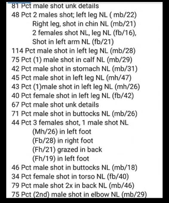 This is the report from NYPD of how many where shot from each precinct. 22 people shot in 10 hours on Friday making the total to 28 from June 8. 44th precinct reported 4 shot with 1 dead, 45, 43, 40 precincts with 1 shot each total of 3, 48 precincts with 4 shot, 75th precinct with 2 shot and 1 each shot at 67, 34, 46, 81, 79 and 2 shot reported at 114th precinct in Queens. There are 38 shooting victims since Monday. Last week, there were 32 shootings with 46 victims.