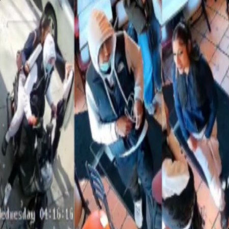 On Wed., 5/7/25, at approx. 4:15 PM, in front of 99-12 Alstyne Ave, the individuals were traveling on a black moped when the rear female individual snatched the victim's necklace.